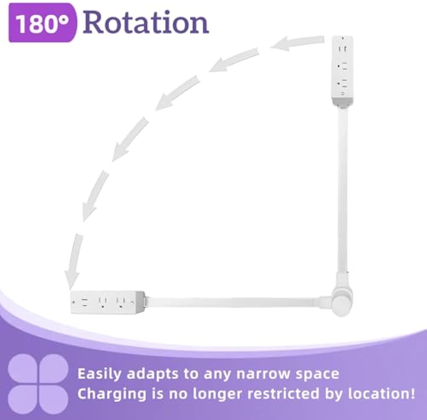 It also features a 180° swivel base, making it easy to fit into tight spaces like couches, nightstands, and desks. Whether you're plugging in vertically, positioning it horizontally, or adjusting it at an angle, it can precisely meet your charging needs, freeing you from any location.