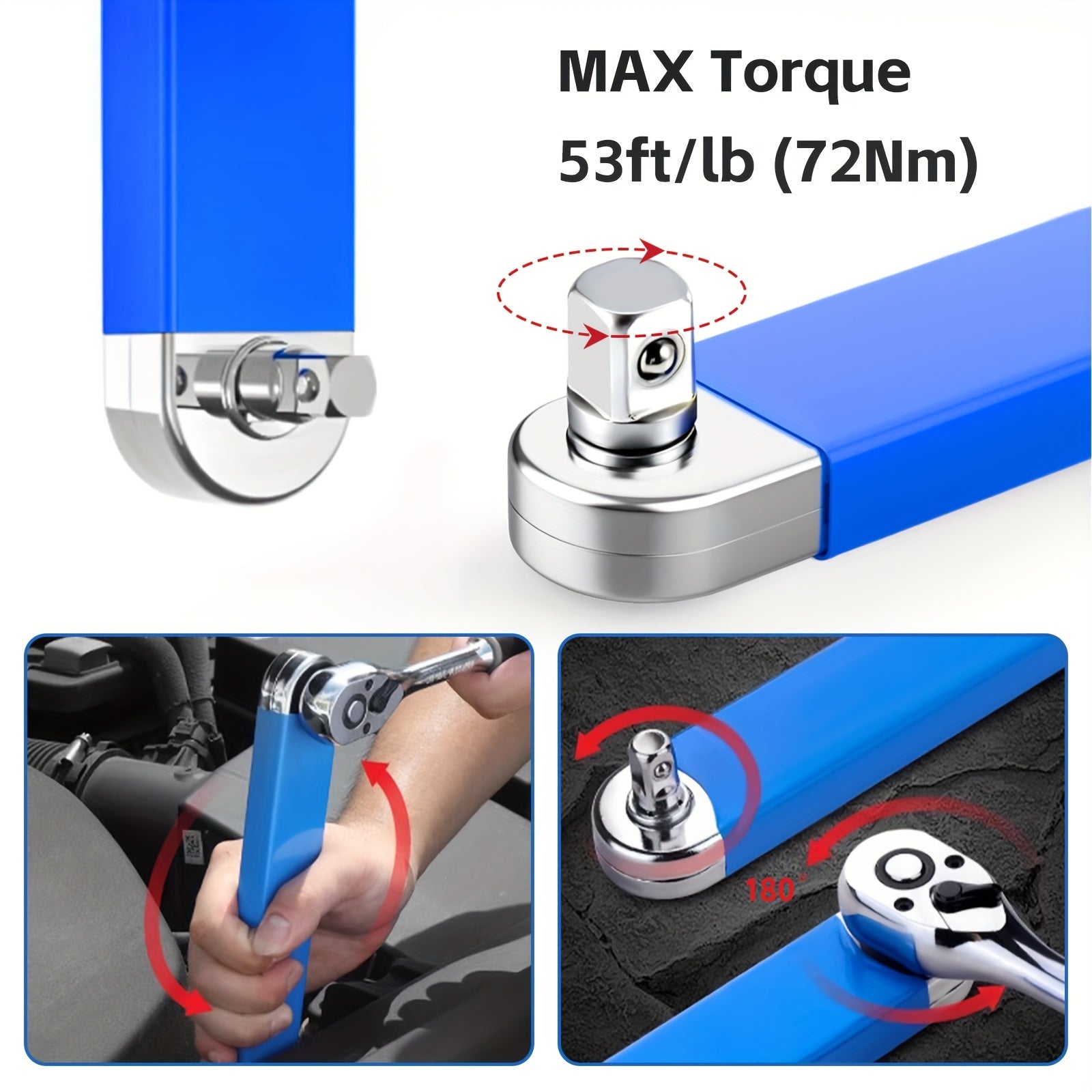 2合1多功能棘轮偏置延长扳手,配有1/2、1/4和3/8方头转接器,适用于狭窄空间,180度旋转、大扭矩、防滑手柄、耐用金属材质,适用于小型通用延长扳手,汽车维修手动工具 商品详情 6