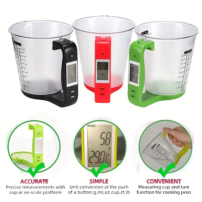 This 20.29 oz smart measuring cup scale with thermometer features 6-in-1 unit conversion (pounds/grams/milliliters/ounces/cups/carats), providing precise measurements for your baking and kitchen experiments 📏. The food-grade PC material and detachable design make it easy to clean 🔧, and real-time temperature monitoring from 0-40°C ensures precise control for every baking session 🍪. It's an essential and efficient tool for baking enthusiasts and a must-have for any kitchen! 🎉