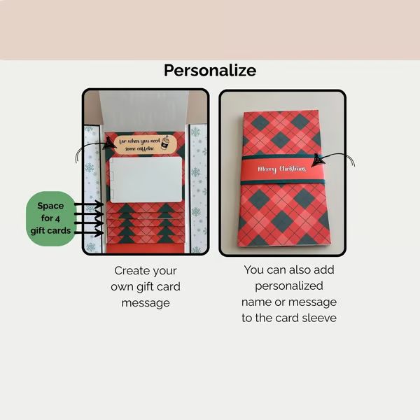 You can add their name and custom messages on the cover and inside each gift card slot.It shows you care enough to make it unique – turning a simple card into a personal treasure.