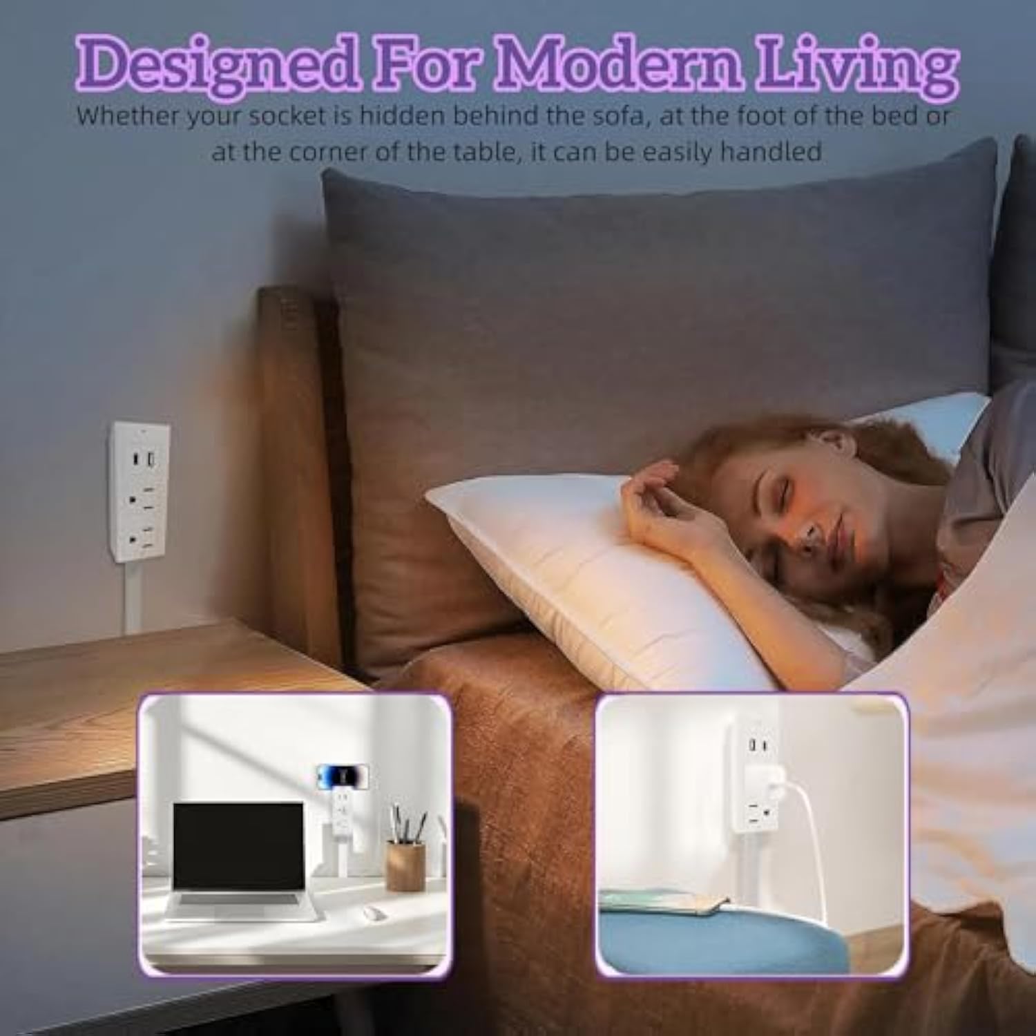 It also features a 180° swivel base, making it easy to fit into tight spaces like couches, nightstands, and desks. Whether you're plugging in vertically, positioning it horizontally, or adjusting it at an angle, it can precisely meet your charging needs, freeing you from any location.