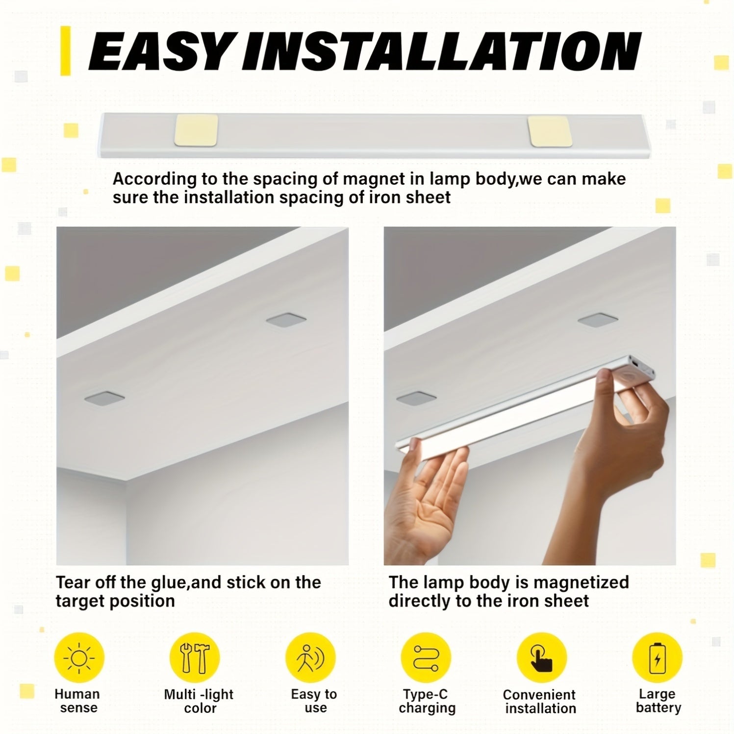 This sensor light features 3 adjustable color temperatures to meet different lighting needs 🌟. The wireless, USB rechargeable design eliminates the hassle of changing batteries. The magnetic base allows for easy attachment to kitchen cabinets, wardrobes, cupboards, staircases, and more, providing flexible and convenient use. Each set includes two lights, perfect for any home space, enhancing your living experience! 🏠✨