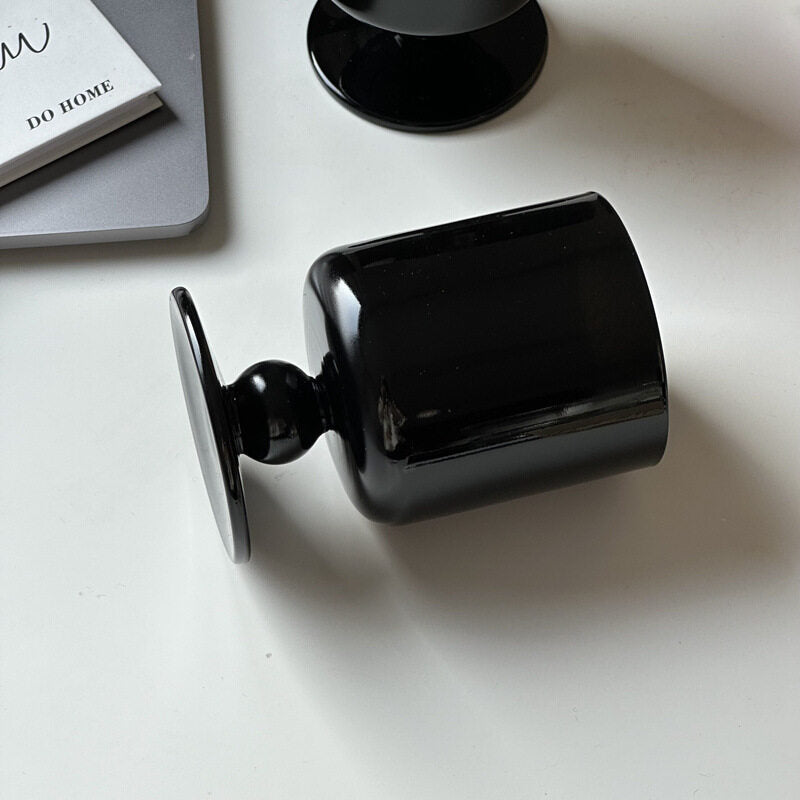 black stemmed glass