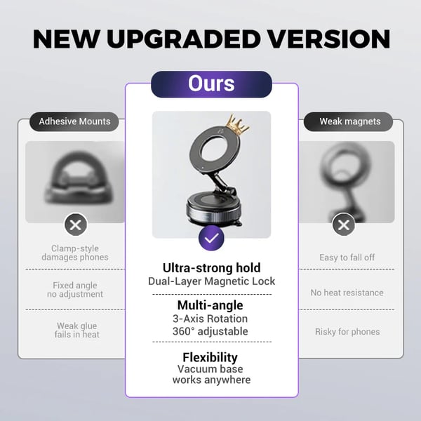 - Upgraded 360° Adjustable Cell Phone Holder:Upgraded magnetic suction phone mount offers 360-degree rotation. Whether it is landscape or portrait mode, it can be easily adjusted to get the best angle you want. Freely enjoy the hands-free navigation and communication like never before