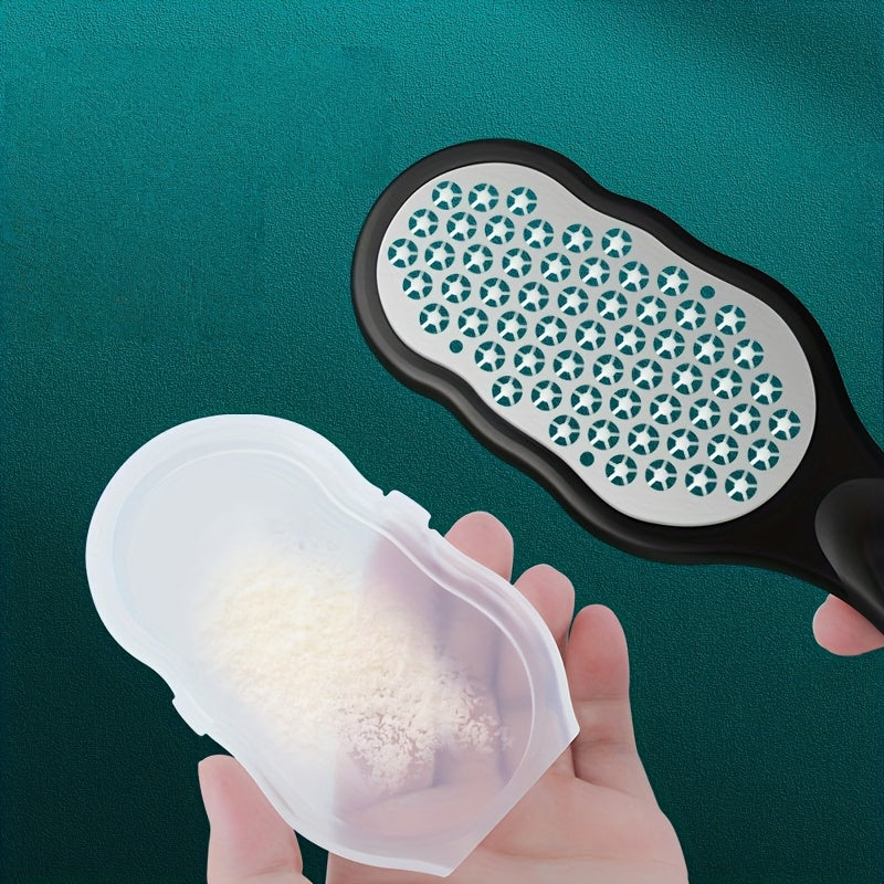 This professional stainless steel foot file features a splash-proof design and an ergonomic handle for comfortable use 💅. The coarse and fine grit exfoliating surfaces help remove dead skin and calluses, leaving your feet feeling brand new ✨. Made from durable plastic, it's perfect for home spa pedicures and manicures, providing a luxurious treatment for your feet! 💖