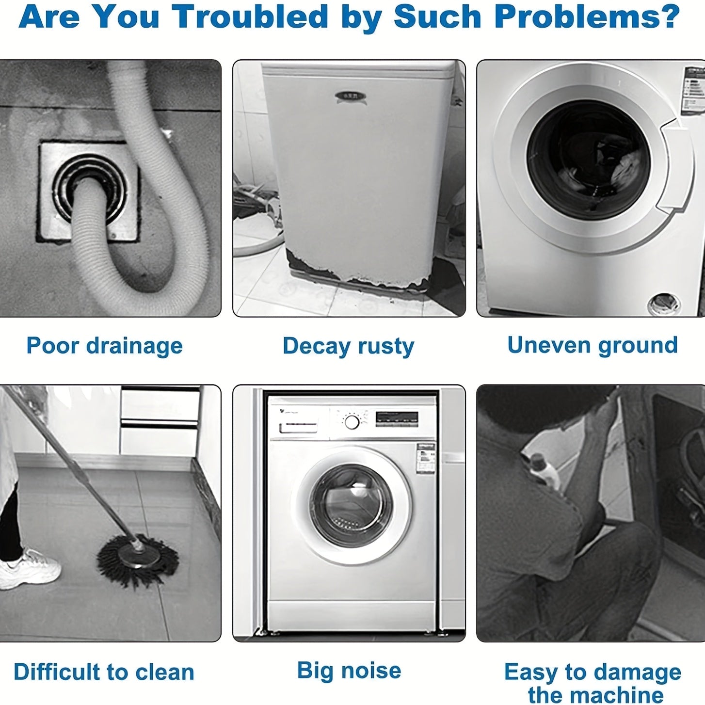 Enhanced stability, anti-vibration and anti-slip! 🛠️ Washing machine base feet pads and brackets, specially designed for front-loading washing machines and refrigerators, providing anti-slip and anti-vibration features, stable elevation, reducing noise and vibration, protecting floors, and extending the lifespan of your appliances! 💡